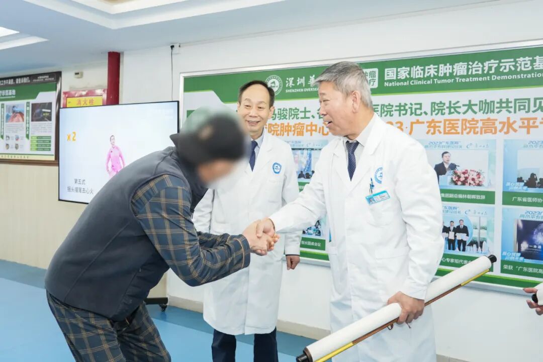 “真没想到,我还能重新拿起画笔,还能唱歌给大家听!” 近日,江苏退伍军人李大叔带着亲手创作的书画,来到我院向董院长、窦主委及医护团队深深鞠躬。谁能想到,这位精神矍铄、声音洪亮的老人,不久前还是一位被下咽癌逼至绝境的患者——肿瘤堵塞咽喉,进食艰难、无法说话,多地求医建议的化疗让他痛苦不堪,而我院精准微创联合肿瘤热疗的 “绿色疗法”,仅用一个疗程便让他重获新生。