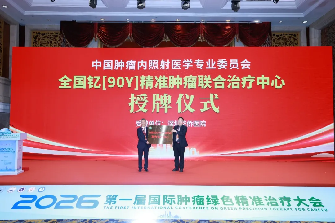 深圳华侨医院肿瘤中心凭借卓越的医疗实力与前沿的治疗技术,经中国肿瘤内照射医学专业委员会联合专家组综合评定,在会上被授予“全国钇[90Y]精准肿瘤联合治疗中心”。